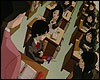 : в классе идет урок, учительница пишет что-то на доске. Лэйн занята своим наладонным Нави. вдруг сцена меняется, появляется какое-то место, заполненное сидящими в два ряда и разговаривающими людьми. у них нет голов, видны только губы. посередине комнаты стоит Лэйн в свитере и с неодобрением взирает на непрерывно говорящих людей