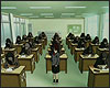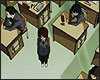 : Лэйн входит в свой класс. девочки переговариваются друг с другом, хихикают, обсуждают свои дела. Рейка, Арису и Джури стоят у парты Джури и что-то увлечённо обсуждают. Лэйн с грустью смотрит на них и идёт дальше, к своей парте, первой в среднем ряду. но её парты нет. Лэйн стоит на пустом месте и, не двигаясь, смотрит в пол. в класс входит учительница, разговоры затихают, староста класса командует: "встать! поклон!"*, но Лэйн стоит и не двигается. учительница говорит: "закройте свои учебники" и раздаёт листы. учительница останавливается напротив Лэйн, и она, вздрогнув, поднимает руки, чтобы взять листы, но учительница передаёт их на следующую парту мимо неё и идёт дальше