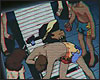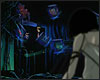: Такиёси Масуока, бизнесмен, весь в поту, с ужасом смотрит на экран своего Нави, где в очередной раз появляется его фотография и адрес. он вскрикивает от ужаса, вскакивает, вытаскивает пустой кейс из-под стола и начинает его набивать бумагами и дискетами. стук в дверь, он машинально отвечает "да!", не прекращая пихать бумаги в кейс. входят двое людей в чёрном, Карл и Короткий со своими наглазными аппаратами. он поднимает голову, смотрит на них и отшатывается к окну. Короткий невозмутимо произносит: "пожалуйста, сохраняйте спокойствие". Масуока, дрожа от страха, бормочет: "к-кто вы?.." Карл огибает стол, подходит к нему и со словами: "время платить по счетам, ясно?" хватает его за голову и всаживает из автоматического шприца какую-то зелёную жидкость ему в шею. Такиёси медленно оседает на пол. разряд молнии прочерчивает ночное небо