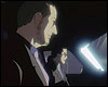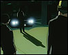 : слышен шум. Карл и Короткий напрягаются и внимательно следят за подъехавшей машиной. у неё нет номерных знаков, а на капоте красуется знак, похожий на "лямбда". Карл с напарником, надев свои очки, выходят из своей машины. из второй машины выходит человек в плаще и с кейсом. это тот мужчина, который был в офисе лабораторий Тачибана. он аккуратно кладёт кейс на асфальт
