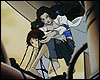 : клуб "Сайберия", судя по всему, ещё никого нет, только троица ребят сидит за столиком. Мю-Мю и Масаюки скучают, а Таро, развалившись в кресле, ухмыляясь, смотрит что-то через виртуальные очки. он громко произносит в пустоту: "ага, так вот оно как!" Мю-Мю вяло интересуется, с кем он общается, и Таро начинает смеяться. потом приподнимается на кресле и, гордо взглянув на друзей, заявляет: "а знаете что? я поцеловал ангела!" Мю-Мю сникает и жалобно смотрит на него: "Таро..."