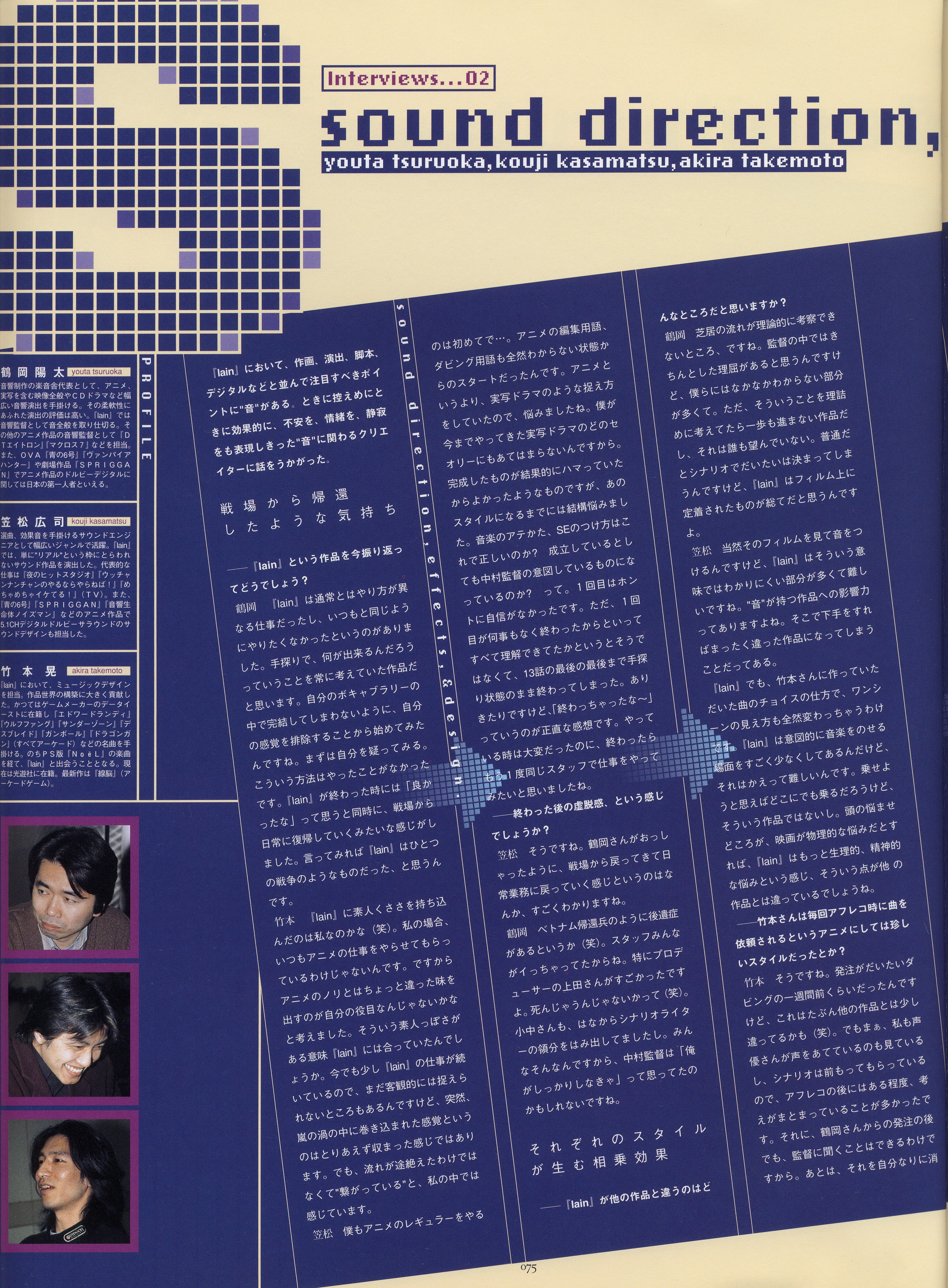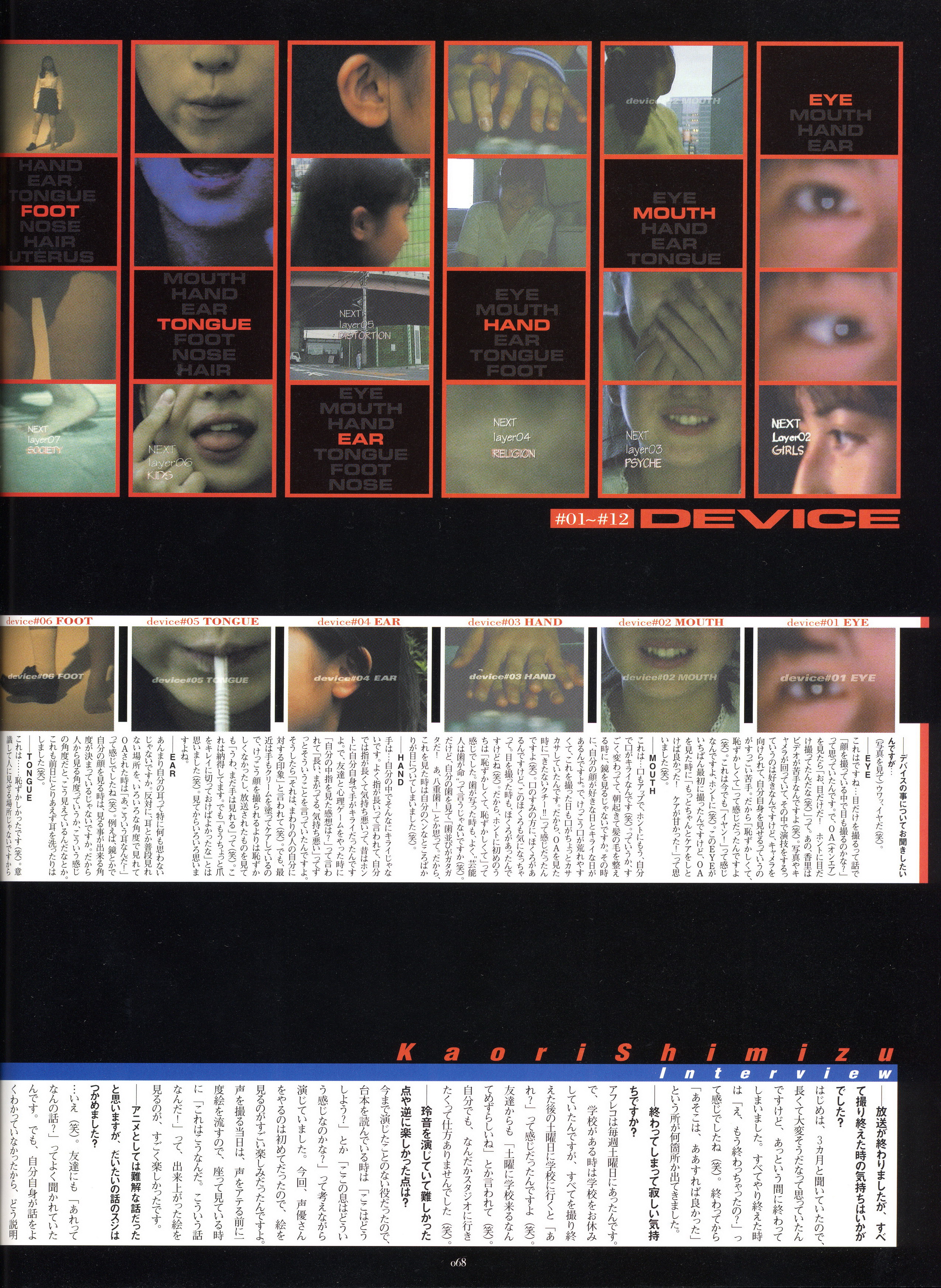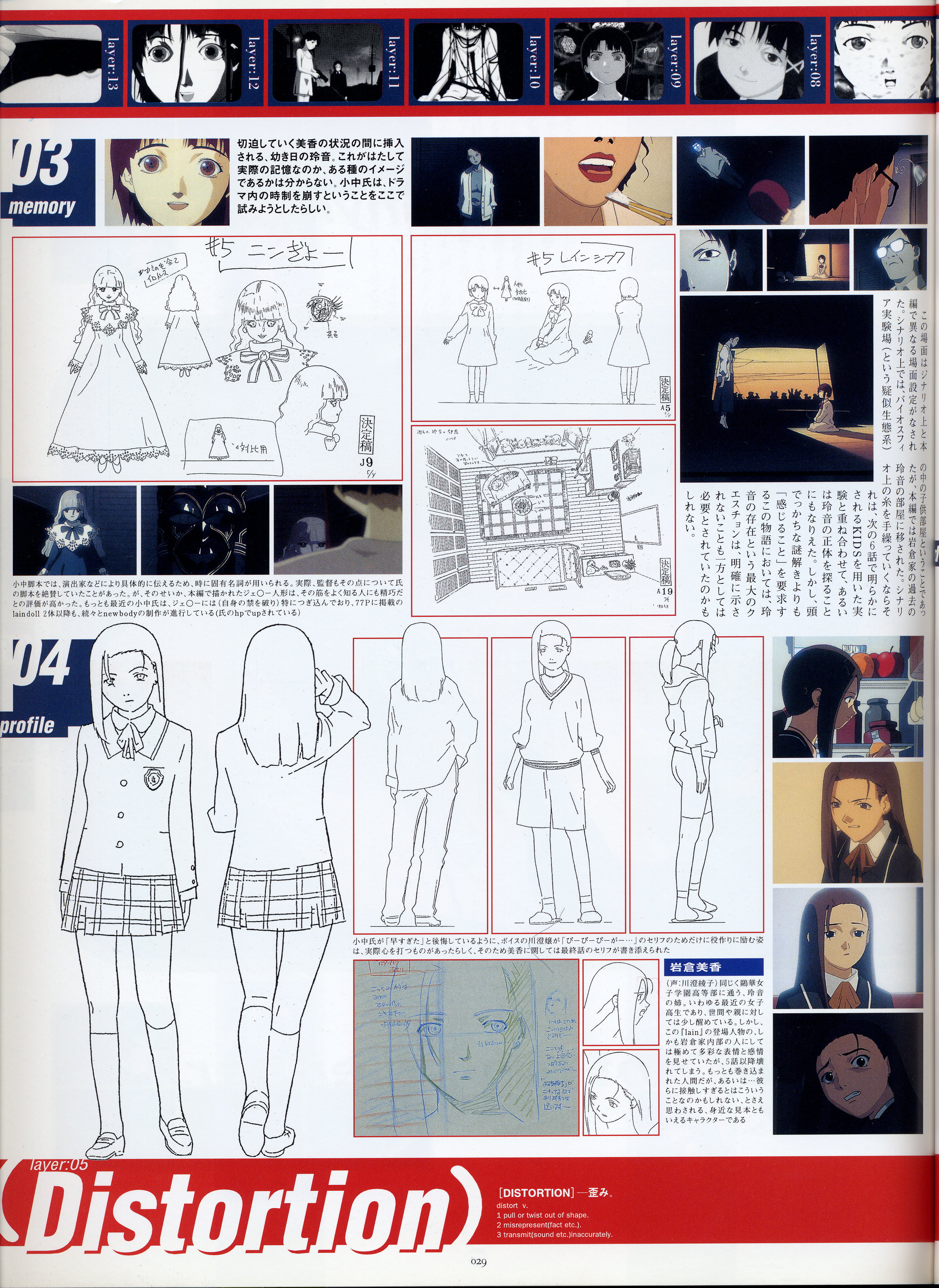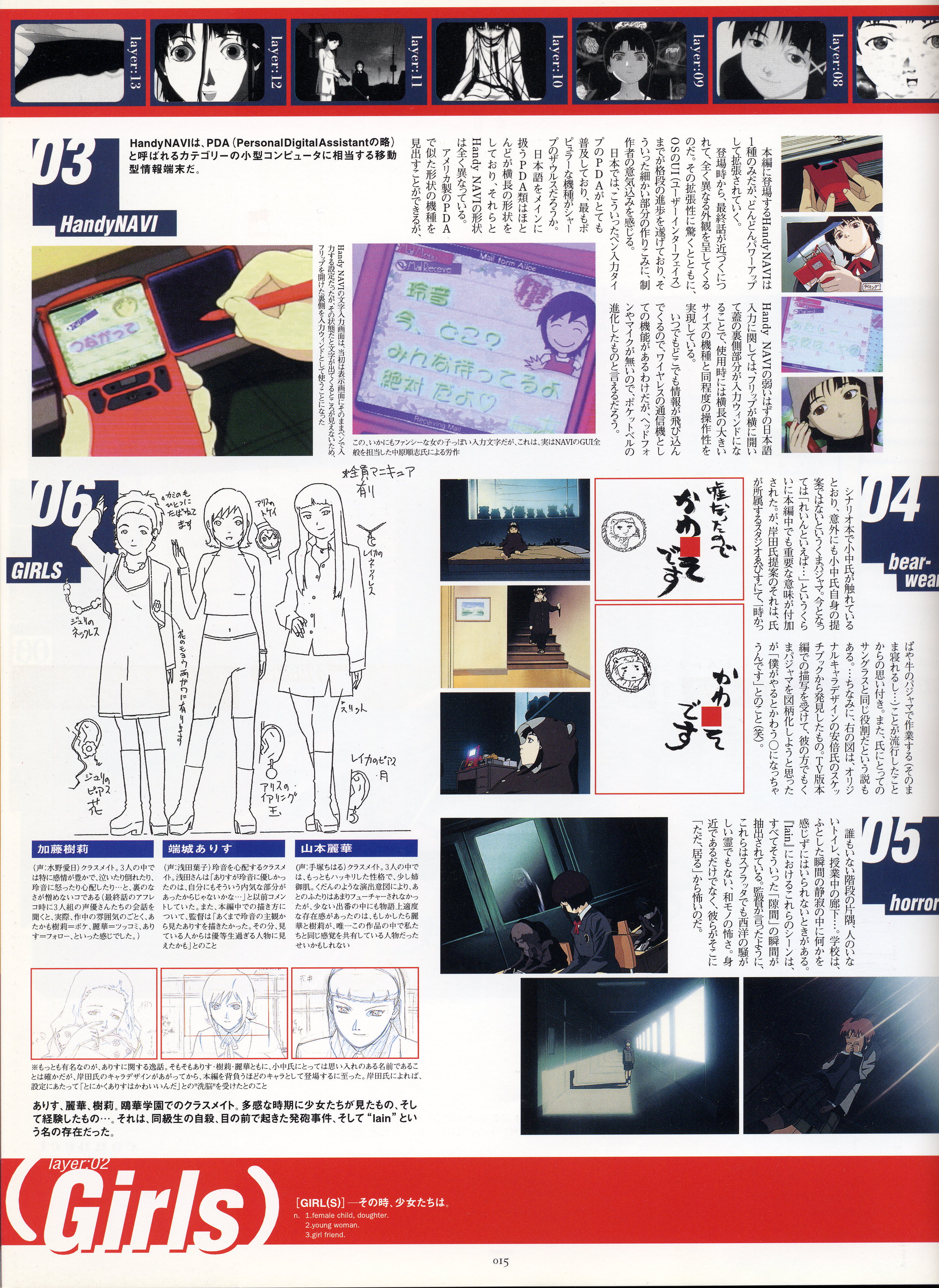 : после выпуска артбука Lain Illustrations (переиздание omnipresence in Wired) самым редким для поклонников стало издание Visual Experiments Lain, которое до сих пор отсутствовало даже в электронном виде в сети. Ко мне в руки чудом попал этот замечательный артбук (хвала японским букинистам на eBay =)) и я не преминул возможностью оставить его в истории. Книга содержит уйму текста на японском (к своему горю, я ничего не понимаю из того, что там написано), кучу карандашных набросков, зарисовок, и прочего дополнительного арта, использовавшегося как рабочий материал при создании сериала. Здесь выложен абсолютно полный скан артбука в 300 dpi, сканировал сам, единственный минус - артбук больше стандартных A4, поэтому края не влезли.